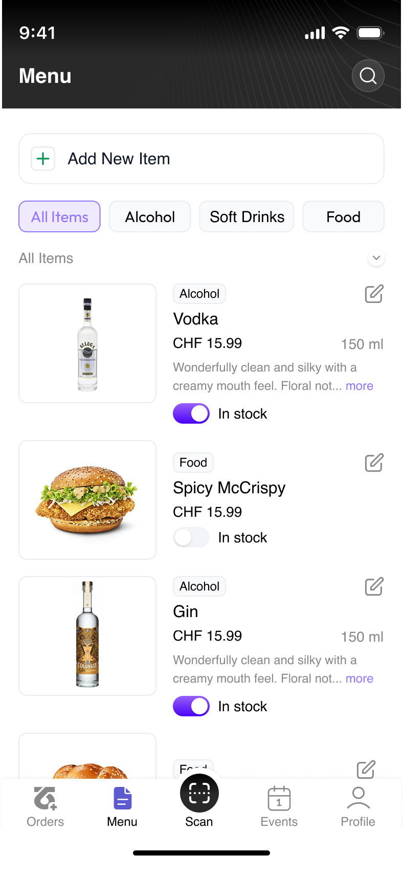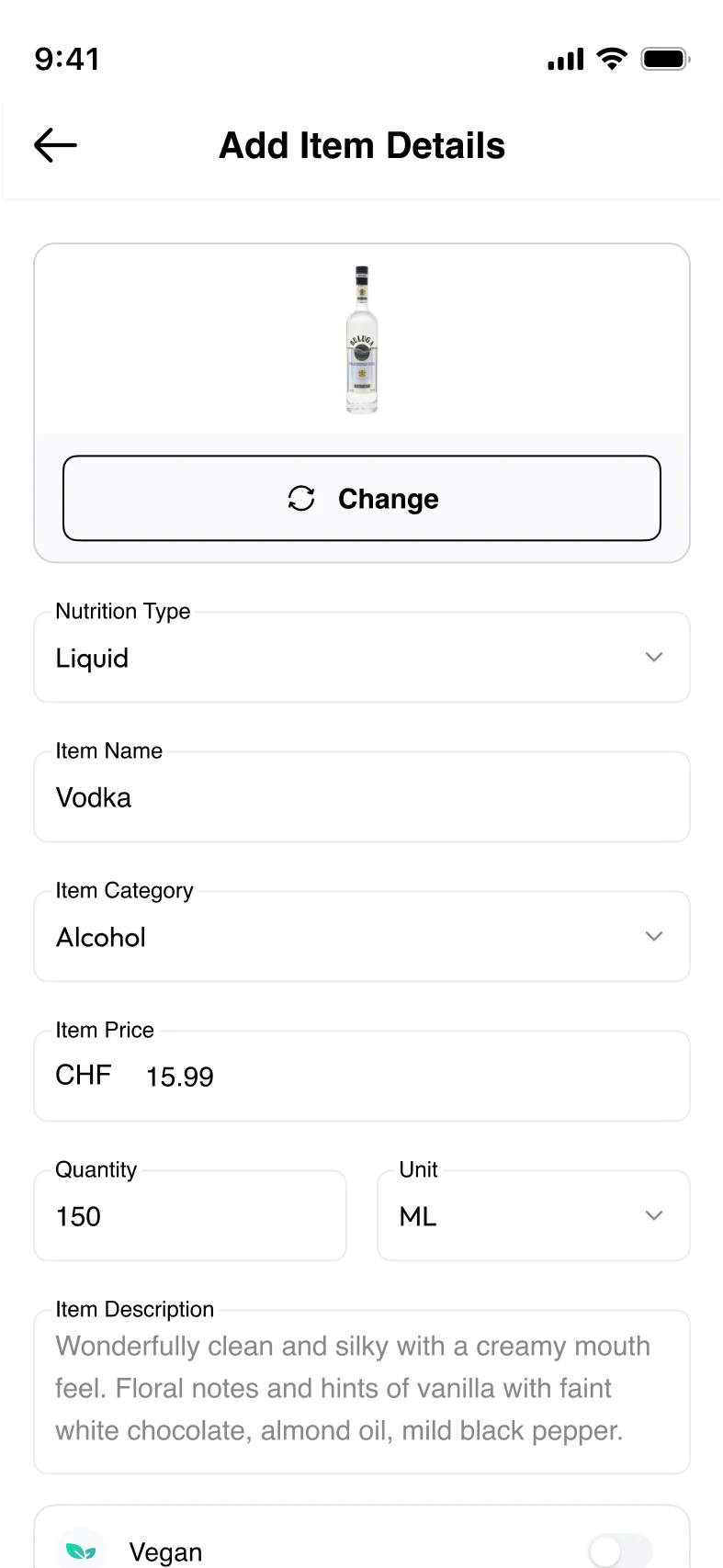 Uploading your products has never been that easy. Simply add a new item and it‘s ready to be ordered by your customers on countr app.