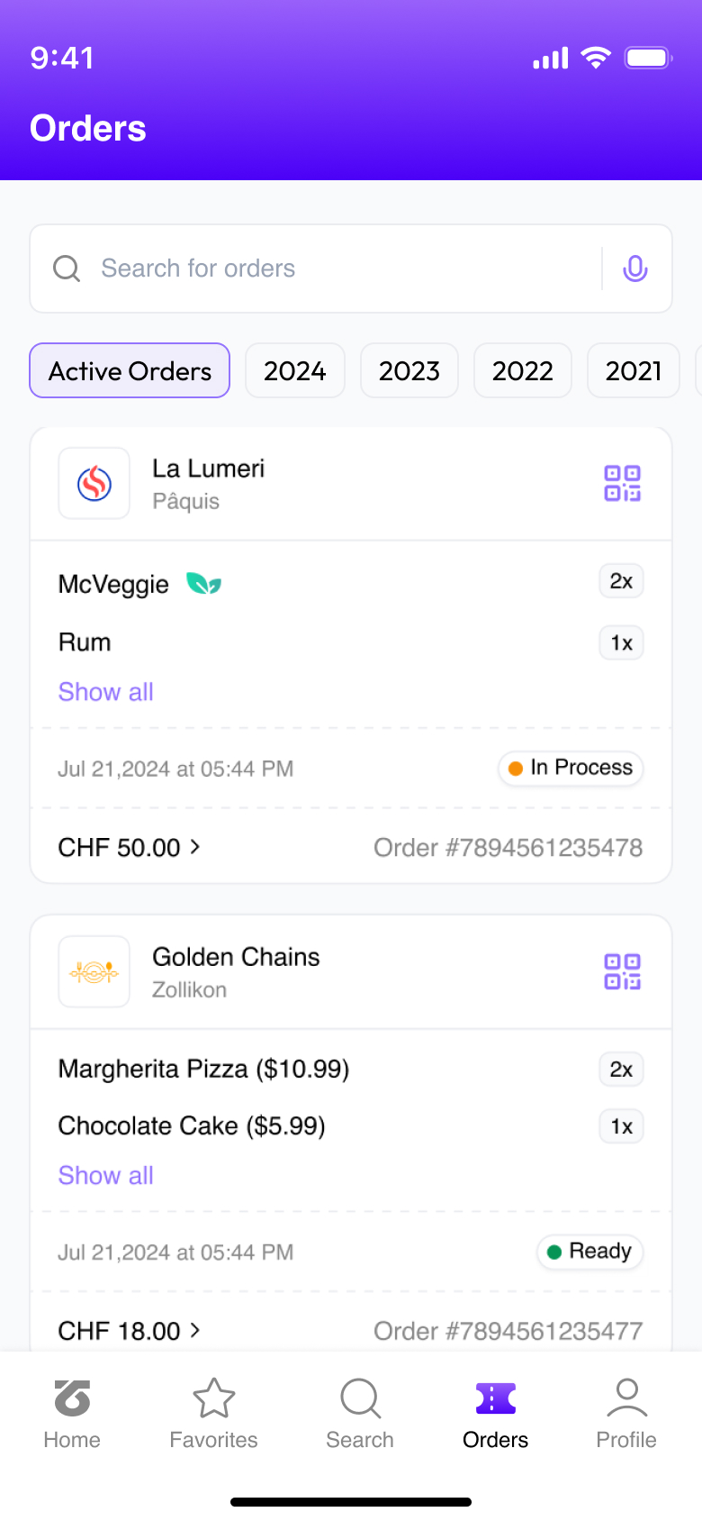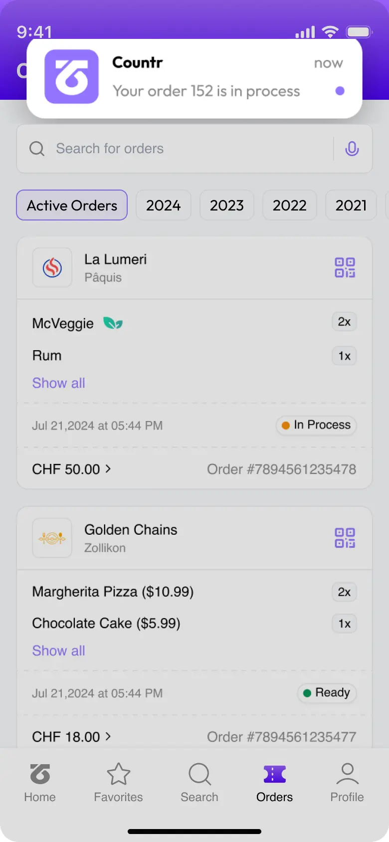 No matter what you’ve consumed last night, we got you. See all your orders sorted by location and date.